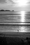Black and White Beach Sunset – Minimalist Ocean Photography Wall Art